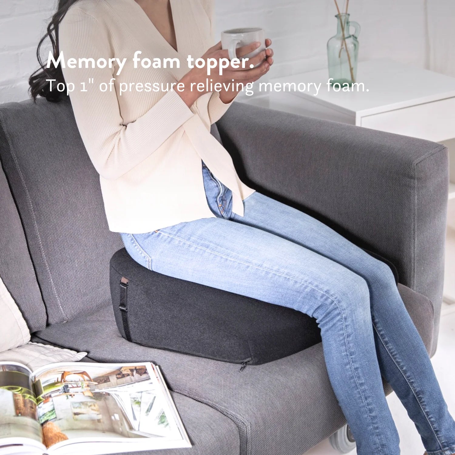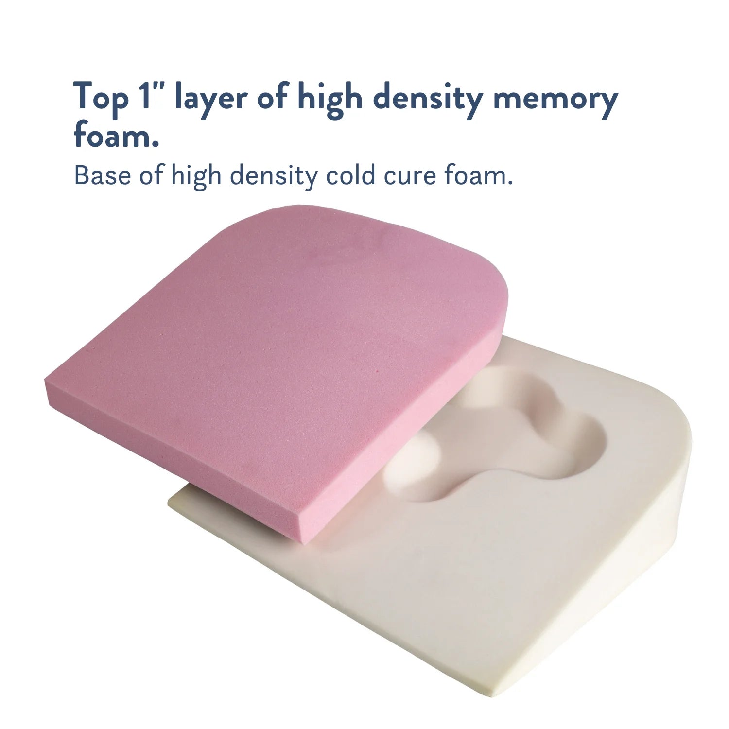 The large wedge cushion has a top 1" layer of memory foam which will help reduce the pressure points and improve comfort. The moulded base is high density with a special indent to reduce pressure in the more sensitive areas, particularly the ischial and sacral areas.